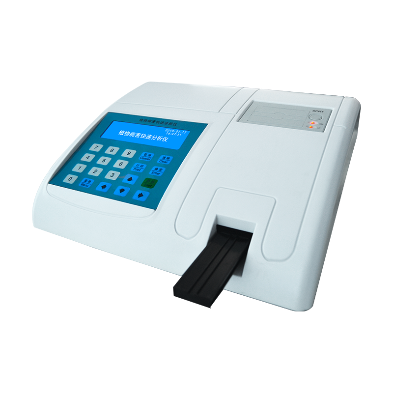 細菌、真菌和病毒是引起農(nóng)作物病害的主要原因。這些病害微生物一般通過莖、葉、根系、果實等侵染植物,大部分病害在染病初期雖能較易防治,但一般不易被人察覺,病害一量發(fā)生,防治不僅困難而且效果較差,致使農(nóng)作物減產(chǎn),甚至絕收。如何在病害發(fā)病初期進行檢測和及時防治,對防治病害的發(fā)生尤為重要。植物病害的檢測是一種復雜的化學和物理過程,從實驗室走入實際應(yīng)用一直是人們追求的目標,鄭州歐柯奇儀器制造有限公司研制的植物病害快速分析儀對指導農(nóng)戶用藥開創(chuàng)了新紀元,該儀器能夠快速分析確定各種農(nóng)作物病害的種類,為如何防治病害及用藥提供了科學理論依據(jù),為農(nóng)場主和農(nóng)戶帶來了極大的便利。二、檢測原理