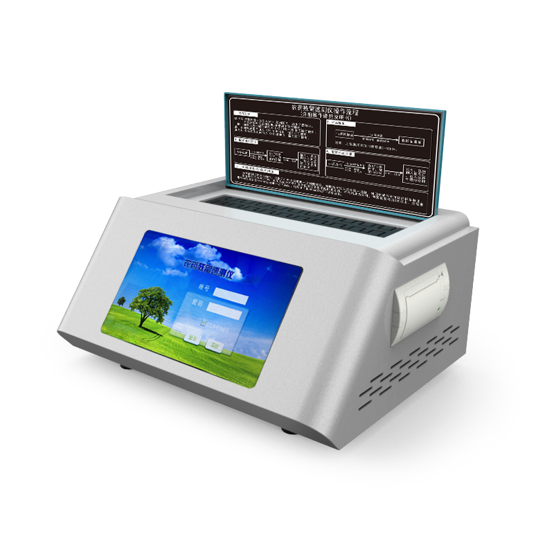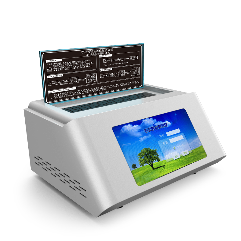 8、檢測模塊具有智能溫控裝置,自動判斷環(huán)境溫度并根據(jù)所選農(nóng)殘卡樣式,自動判定并能顯示最佳溫度,可自動加熱并恒溫,保證反應(yīng)在最佳穩(wěn)定溫度進(jìn)行,檢測快速簡單。