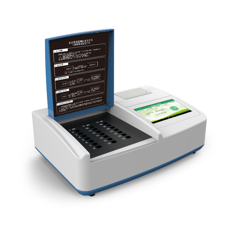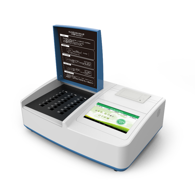 農(nóng)藥殘留檢測儀根據(jù)國家標(biāo)準(zhǔn)GB/T5009.199-2003研制,主要用于蔬菜、水果、茶葉、糧食、水及土壤中有機(jī)磷和氨基甲酸酯類農(nóng)藥的快速檢測,特別適用于各級食品安全檢測機(jī)構(gòu)實(shí)驗(yàn)室及現(xiàn)場執(zhí)法使用,此外還可用于果蔬茶生產(chǎn)基地和農(nóng)貿(mào)批發(fā)銷售市場現(xiàn)場檢測,餐館、食堂、家庭果蔬加工前的安全速測等。