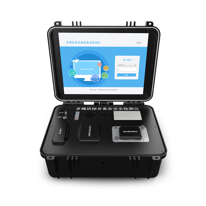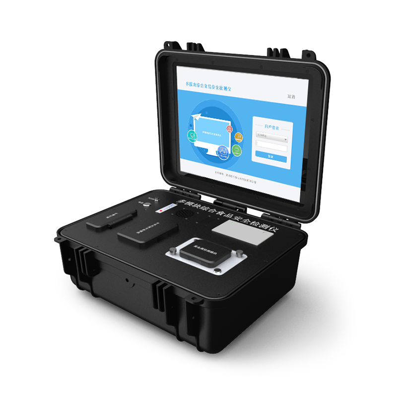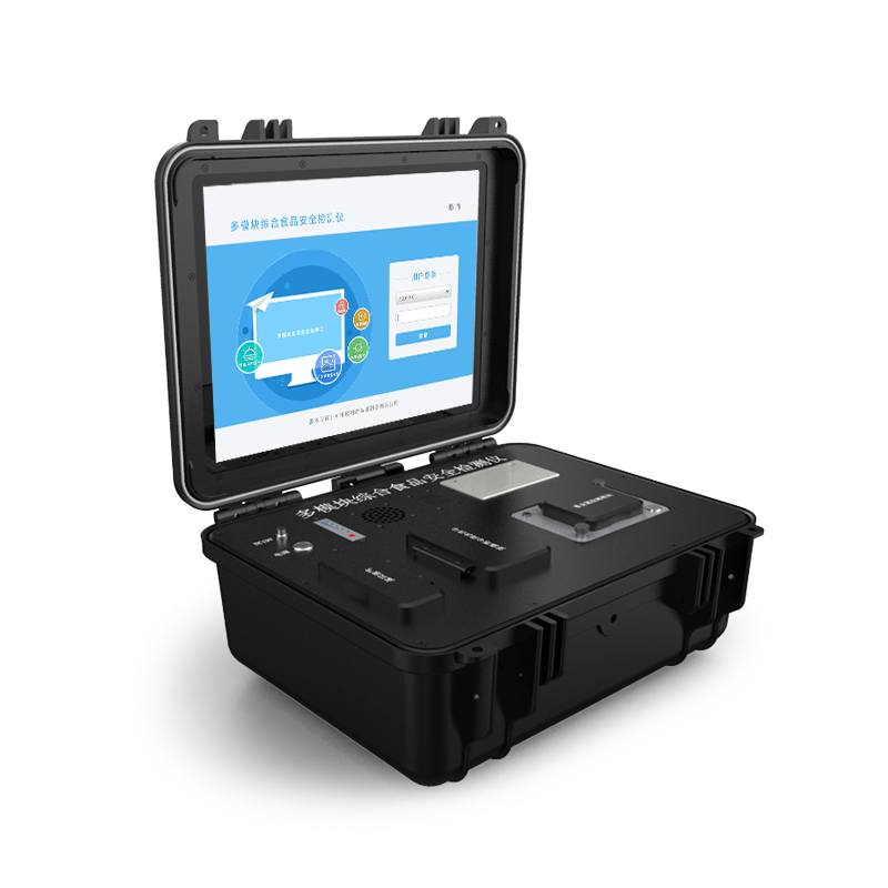 多模塊綜合食品安全檢測(cè)儀集一體化多模塊設(shè)計(jì),內(nèi)置分光光度法檢測(cè)模塊、干式化學(xué)(膠體金)檢測(cè)模塊、薄層色譜檢測(cè)模塊、熒光檢測(cè)模塊,電化學(xué)檢測(cè)模塊;操作簡(jiǎn)單,配置齊全,便攜執(zhí)法,檢測(cè)項(xiàng)目豐富,可檢測(cè)農(nóng)藥殘留、食品理化、獸藥殘留、非法添加殘留物等數(shù)十類檢測(cè)項(xiàng)目。