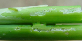 為害特征:幼蟲蛀食韭葉,嚴重時心葉變黃,降低產(chǎn)量和質量,以老韭菜和種株受害最重。