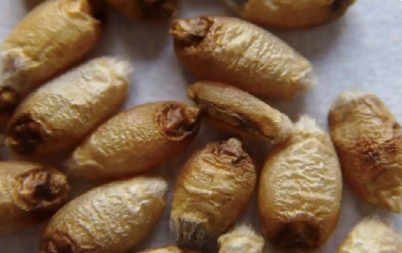 多種病原真菌均能引起小麥黑胚,主要是細(xì)交鏈孢菌、極細(xì)交鏈孢菌和麥類根腐離蠕孢菌)。不同病原菌侵染小麥籽粒引起的小麥黑胚病不同的癥狀。鏈格霉侵染引起的癥狀通常在籽粒胚部或其周圍岀現(xiàn)深褐色的斑點,病斑一般不出現(xiàn)在種子除胚部以外的其他部分,這種褐色斑或黑斑代表典型的“黑胚”癥狀,其籽粒一般飽滿,大小和形狀正常。麥類根腐德氏霉和麥類根腐離蠕孢侵染引起的癥狀是籽粒帶有淺褐色不連續(xù)斑痕,其中央為圓形或橢圓形的灰白色的區(qū)域,這種斑痕為典型的眼睛狀,這種眼睛狀斑大多位于籽粒中間或遠(yuǎn)離種子胚,而很少靠近另一端。在大多數(shù)情況下單個籽??梢姸鄠€斑痕,通常這些斑痕連結(jié)在一起占據(jù)較大的籽粒表面,嚴(yán)重時籽粒全部變成黑褐色。
