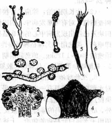 3.子座頂部剖面 4.子囊殼 5.子囊