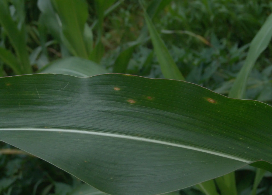 及時摘除底部病葉。在玉米抽穗前,應(yīng)在雨前及時摘除植株下部2?3片病葉,并集中清理出田外處理,以壓低田間再侵染菌量,防止病害向中部和上部葉片蔓延,并可改善田間小氣候,推遲病害的發(fā)生和流行。實行大面積1?2a輪作也可有效減少菌源。