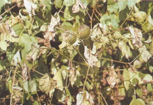 3.棉株生育期 棉花現(xiàn)蕾期后較感病,這是因?yàn)楝F(xiàn)蕾開花階段棉株抗病性降低,同時(shí)該階 段棉株易形成病菌生長(zhǎng)所需的單糖、雙糖及氨基酸等營(yíng)養(yǎng)物質(zhì)。