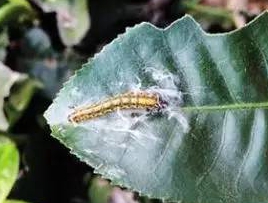 幼蟲共5齡。一、二齡為潛葉期,潛食葉肉,葉背呈現(xiàn)彎曲帶狀潛道。三齡和四齡前期為卷邊期,吐絲將部分葉緣向背面卷折,匿居咀食葉肉,后期僅留上表皮。四齡后期和五齡為卷苞期,將葉尖向葉背卷結(jié)成三角形蟲苞,匿居其中咀食葉肉,至后期僅留一層上表皮。一般是1個(gè)苞內(nèi)只有1頭幼蟲,也時(shí)有2頭以上的。幼蟲排出的糞便堆積在苞內(nèi),對芽葉造成嚴(yán)重污染,且常轉(zhuǎn)移他葉結(jié)苞為害。