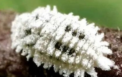 若蟲:雌若蟲共3齡,雄若蟲僅有2齡。一齡橢圓形,淡紫色,長為0.20?0.39mm,足發(fā)達,腹末有2尾毛,后期體被白蠟。二齡轉(zhuǎn)黃至橙黃色,長為0.36?0.92mm,足消失,背面蠟質(zhì)形成白色介殼,前端殼點淺褐色。三齡(雌)梨形,淡黃色,腹末三、四節(jié)前拱,介殼灰白色,且較寬大。