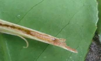 該蟲(chóng)孵化多在10:00前。幼蟲(chóng)孵出后30min左右,就開(kāi)始活動(dòng),爬至葉背處,選擇位置,啃開(kāi)葉表皮,潛入葉肉內(nèi)取食,形成大小不同的黃褐色蟲(chóng)斑。蟲(chóng)斑大部分靠近葉脈中部。12月大部分幼蟲(chóng)開(kāi)始越冬。越冬幼蟲(chóng)于翌年3月春梢開(kāi)始萌發(fā)時(shí),從葉片轉(zhuǎn)移蛀食嫩梢,1頭蟲(chóng)可為害多個(gè)春梢。隨著蟲(chóng)體增大,食量增加,幼蟲(chóng)大量啃食隧道周圍木質(zhì)部?jī)H留表皮,致使被害嫩梢大量失水而干枯死亡。三齡幼蟲(chóng)老熟后,在被害枯梢的侵入口,咬1圓形羽化孔,并在羽化孔下部作蛹室,吐絲膜封口化蛹。