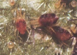 若螨:綠色,具4對(duì)足,無生殖孔,一齡和二齡若螨的體形大小、腹面毛數(shù)、生殖孔等可與成螨區(qū)別。
