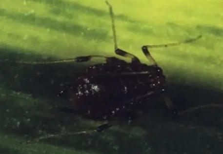 香蕉交脈蚜分為無翅蚜和有翅蚜兩種類型。無翅蚜體卵圓形,長0.8?1.6mm,紅褐色至黑色,額瘤明顯,尾片圓錐形,具瓦紋。有翅蚜體長卵形,長約1.7mm,頭、胸黑色,腹部紅褐色至黑色,頭頂兩側(cè)額瘤明顯。復(fù)眼紅棕色,觸角、腹管和足的腿節(jié)、脛節(jié)的前端呈暗紅色,觸角6節(jié),并在其上有若干個圓形的感覺孔,腹管圓筒形,前翅徑脈與中脈有段交會(故稱“交脈”),形成一個四邊形閉室,翅脈附近有許多黑色小點。前翅大于后翅。孤雌生殖,卵胎生,若蚜要經(jīng)過4個齡期以后,才變成有翅或無翅成蟲。