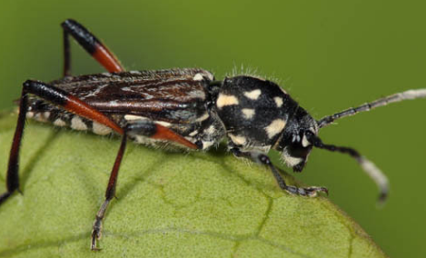 脊胸天牛(Rhytidodera bowringii White)屬鞘翅目天牛科。在我國(guó)和緬甸、印度尼西亞、印度腰果植區(qū)發(fā)生,是我國(guó)重要的腰果害蟲。除為害腰果外,還為害芒果、人面子等。脊胸天牛幼蟲蛀害腰果枝干,造成枝干枯死或折斷,使腰果植株長(zhǎng)勢(shì)減弱,嚴(yán)重時(shí)可導(dǎo)致植株死亡。