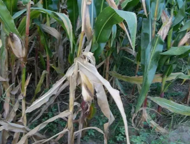 2.氣象因素 玉米灌漿至成熟期的氣象因素,特別是降雨量與發(fā)病的關(guān)系密切。如玉米散粉期至乳熟初期遇大雨、雨后暴晴的天氣時(shí),發(fā)病重;久雨乍晴,氣溫回升快,植株易產(chǎn)生青枯癥狀。夏玉米生長前期干旱、中期多雨、后期溫度偏高的年份,發(fā)病較重。
